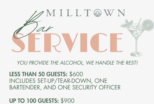 ***NO SHOTS, cash bars, or BYOB are allowed at Milltown